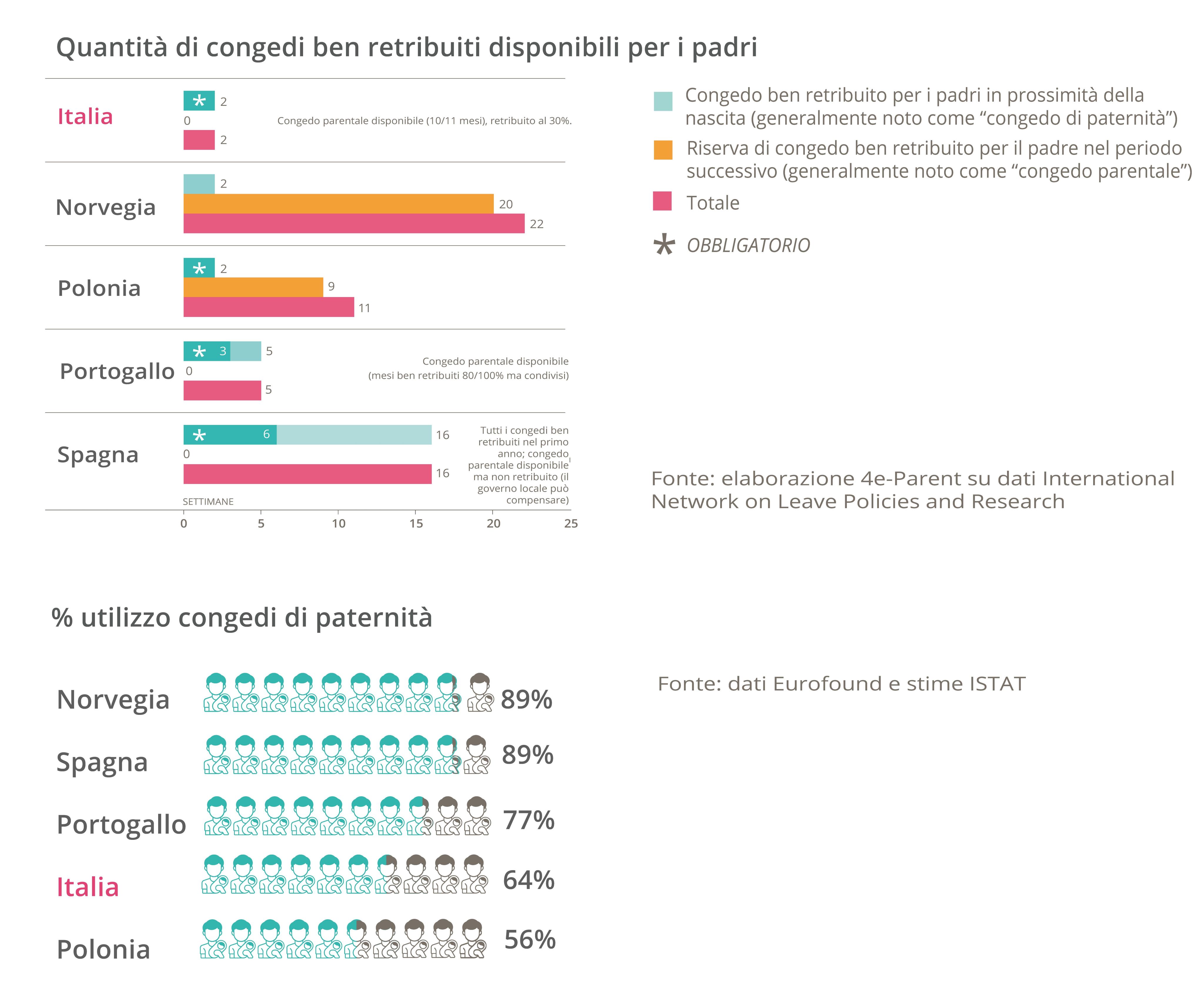 22/27 Paesi europei hanno congedi di paternità di durata superiore a quelli italiani.
