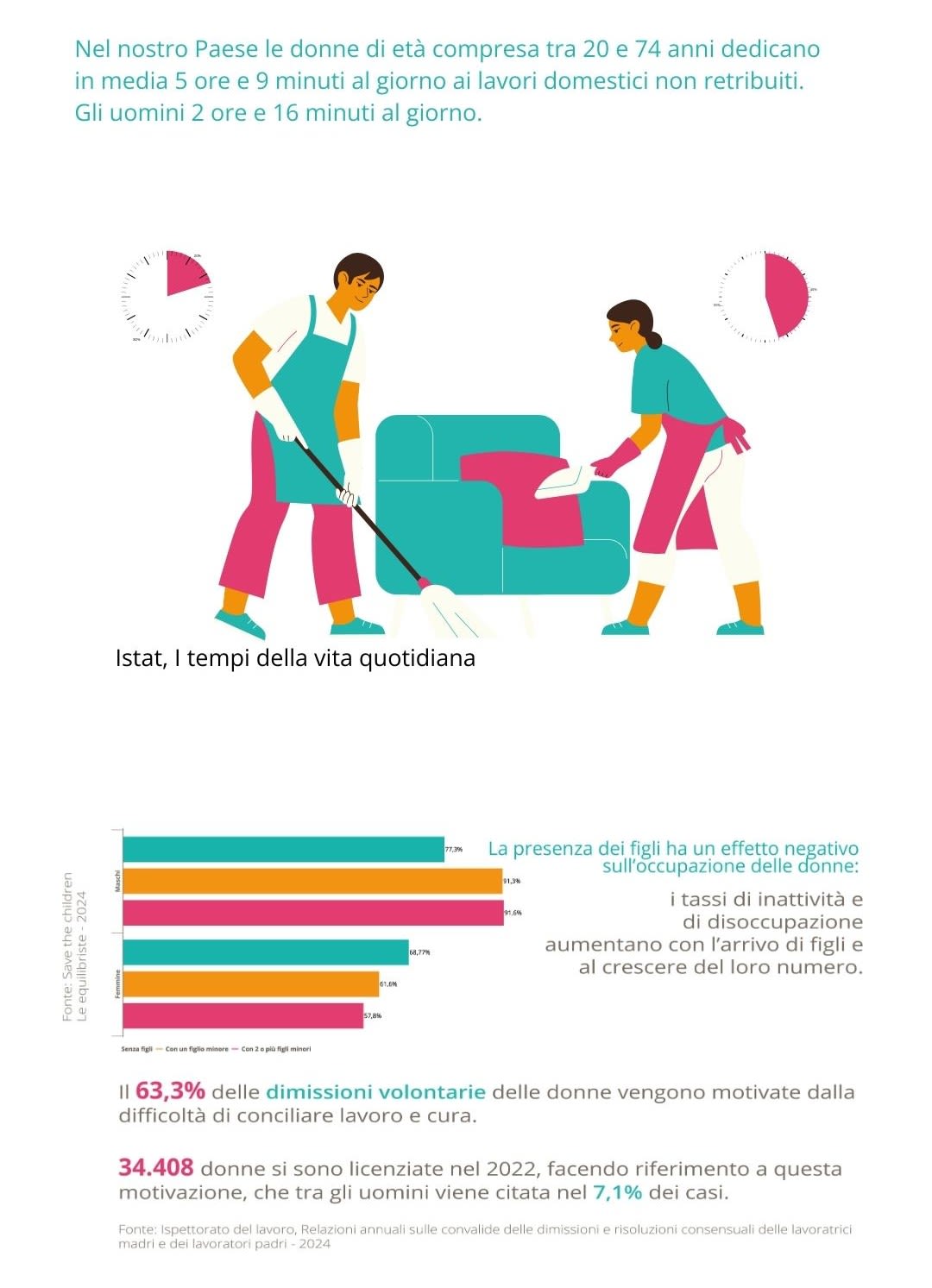 Lo scarso coinvolgimento dei padri nei primi anni di vita di figli e figlie è anche il frutto di una cultura che vede la madre come la principale responsabile e che si riflette nella disparità di tempo dedicato al lavoro domestico non retribuito.